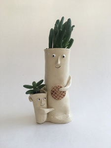 2021Vader en zoon. Plantenpotjes die van stroopwafels houden.
