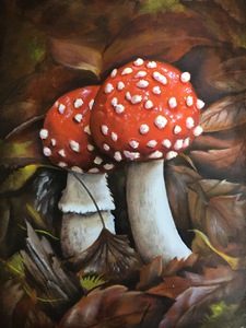 2022Twee paddenstoelen knus samen.